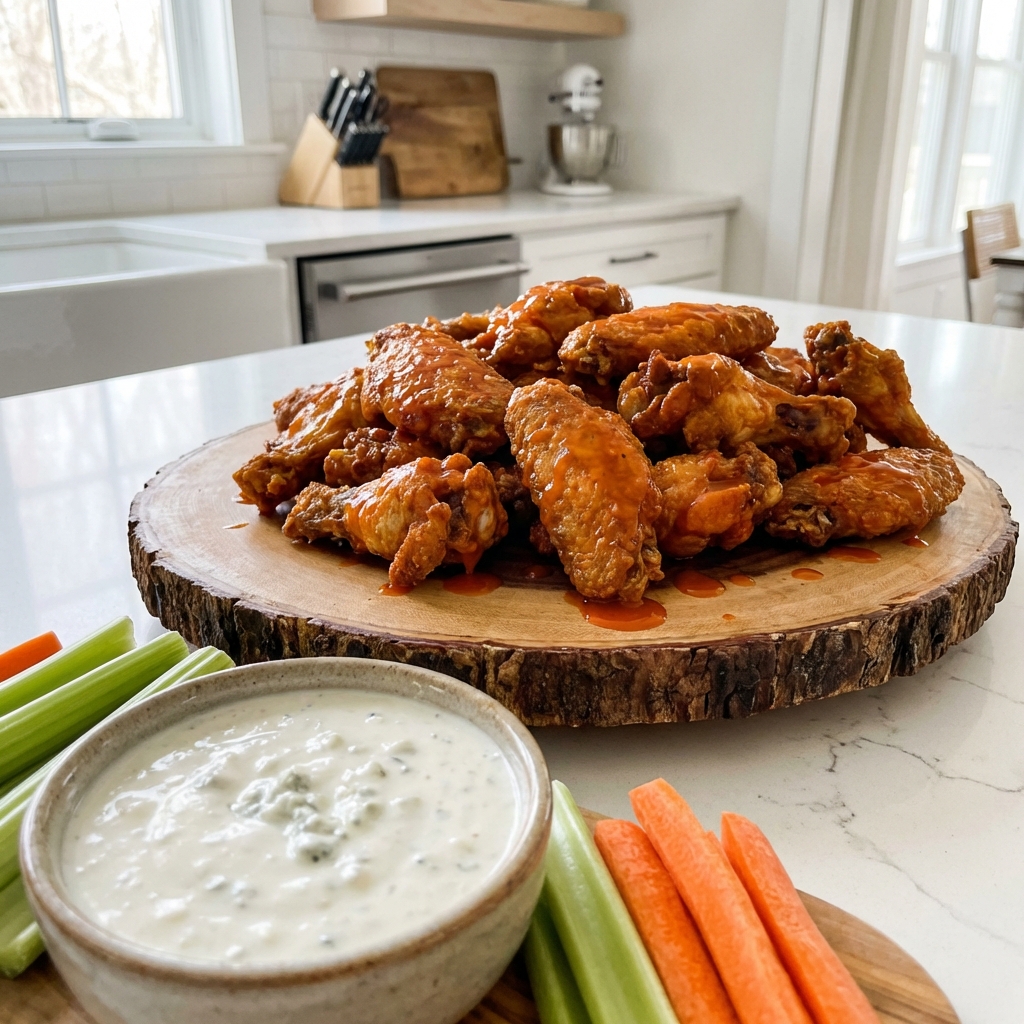 Bring the authentic sports bar experience home with these Classic Buffalo Chicken Wings. This recipe guarantees wings with shatteringly crisp skin and juicy meat, perfectly coated in the iconic balance of spicy, tangy, and buttery sauce. Paired with cool, creamy blue cheese dressing and crisp celery, they’re the ultimate crowd-pleasing appetizer for game day, parties, or any craving for legendary wings.