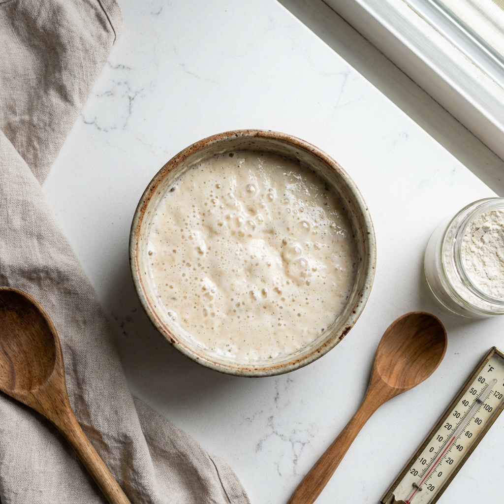 Cover the bowl tightly with plastic wrap. Let it rest at room temperature for 1 hour, then refrigerate overnight (8-12 hours). The batter will rise, become bubbly, and almost double.