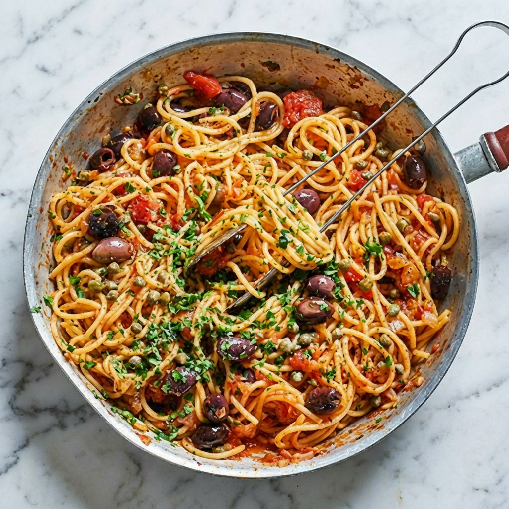 - Serve immediately—Pasta Puttanesca is best fresh; reheating can intensify the saltiness.