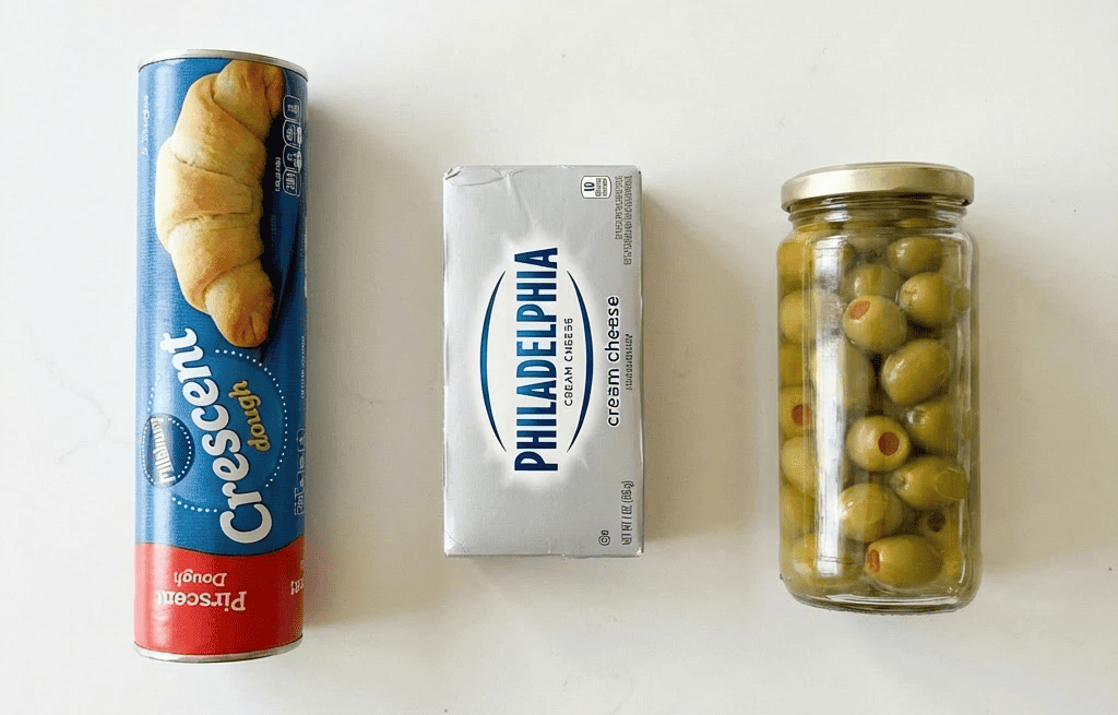 The cream cheese filling acts as both flavor agent and insulator. Its high fat and moisture content protect the olive from drying out and help steam the dough from the inside, while also creating a rich, melty contrast to the crisp exterior. Wrapping the dough securely around the filling is key—it creates a seal that contains the steam, ensuring the puff bakes up tall and the cheese stays contained, resulting in a beautiful, self-contained package of flavor.