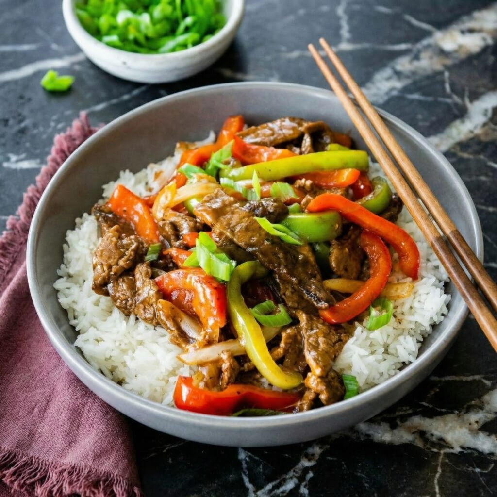 Chinese pepper steak is a beloved takeout classic—tender strips of beef stir-fried with crisp bell peppers and onions in a rich, savory black pepper sauce. It’s quick, satisfying, and surprisingly easy to make at home.