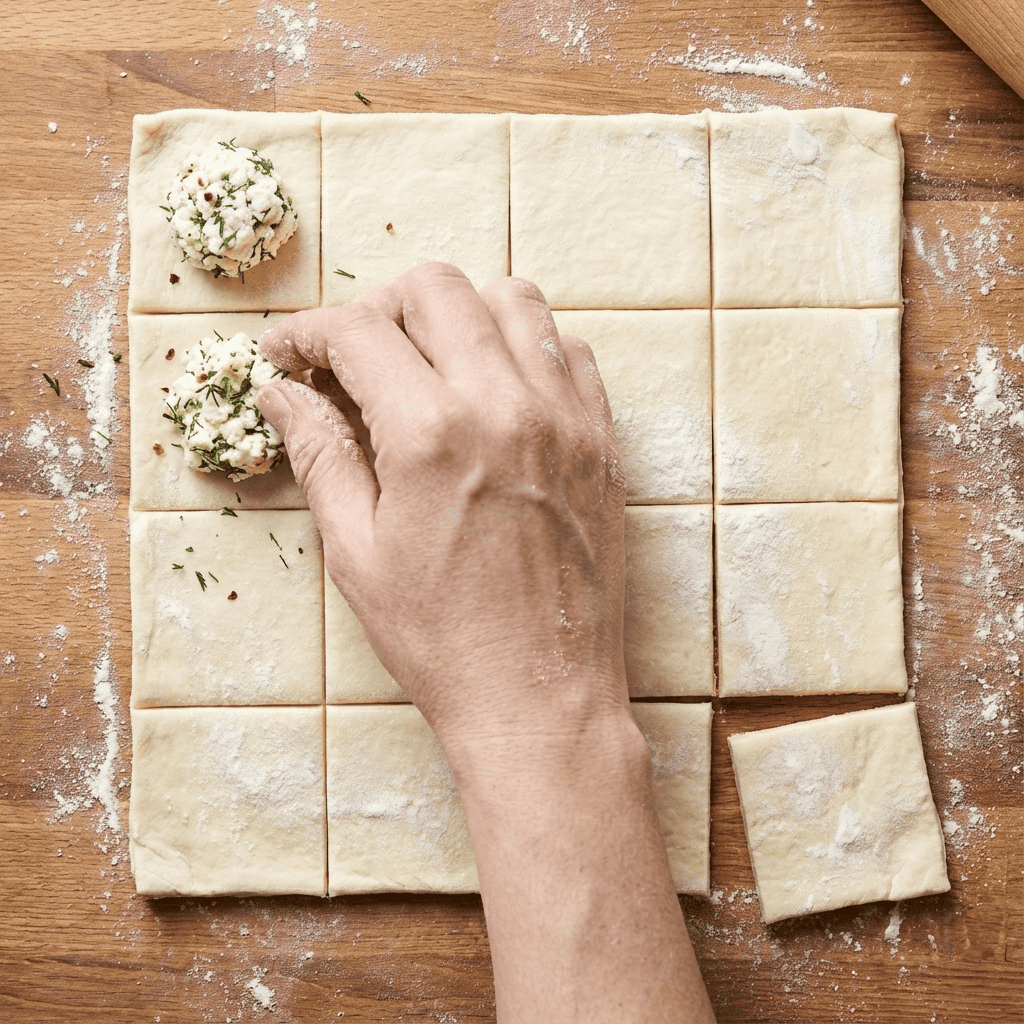 The feta filling plays a crucial dual role. Its crumbly texture and high salt content provide a powerful flavor punch that stands up to the rich pastry. Crucially, its low moisture content (compared to a wetter cheese) means it won’t release steam and sog out the delicate layers from the inside, ensuring the pastry shell bakes up supremely crisp. A tight seal around the filling is essential—it acts as a pressure vessel, containing the steam to maximize the “puff” and locking in the flavorful cheese.