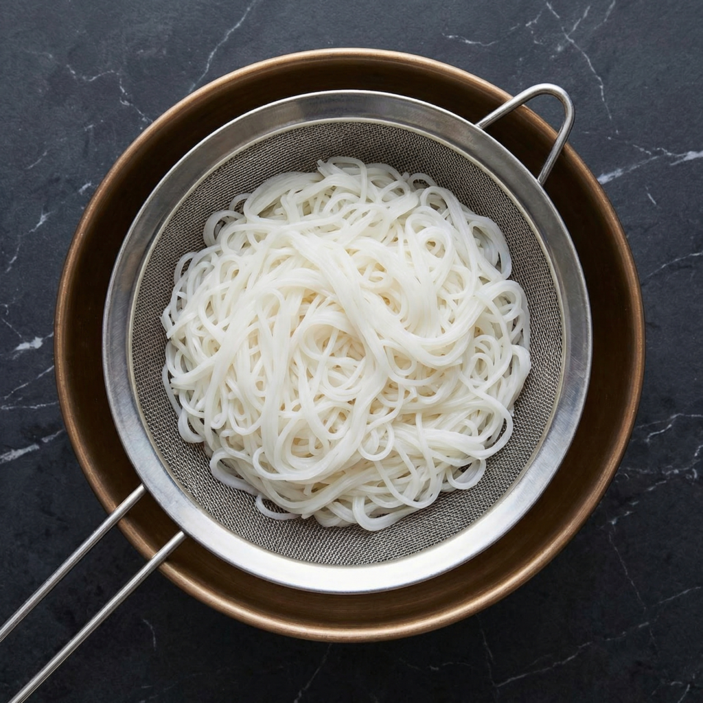 - Rinse noodles under cold water to stop cooking and prevent clumping.