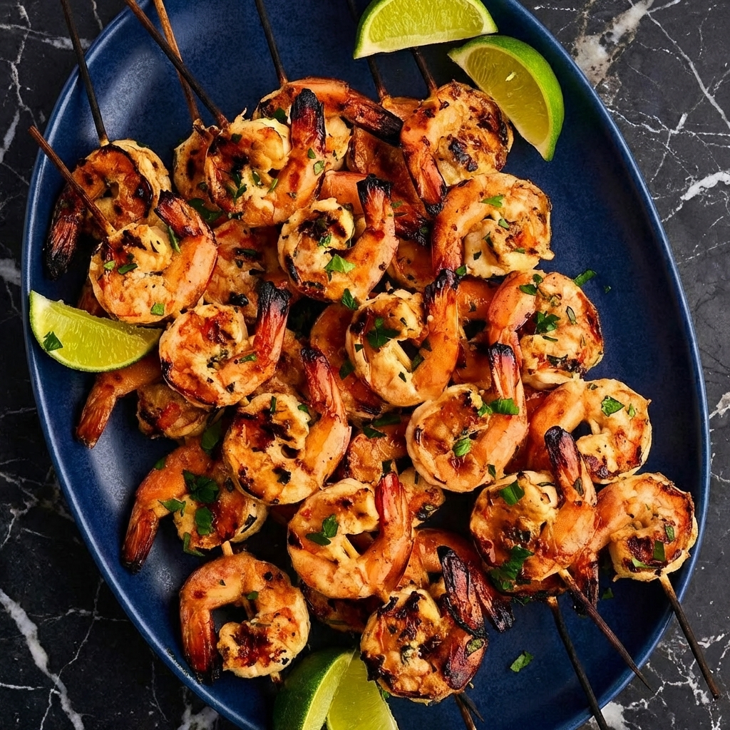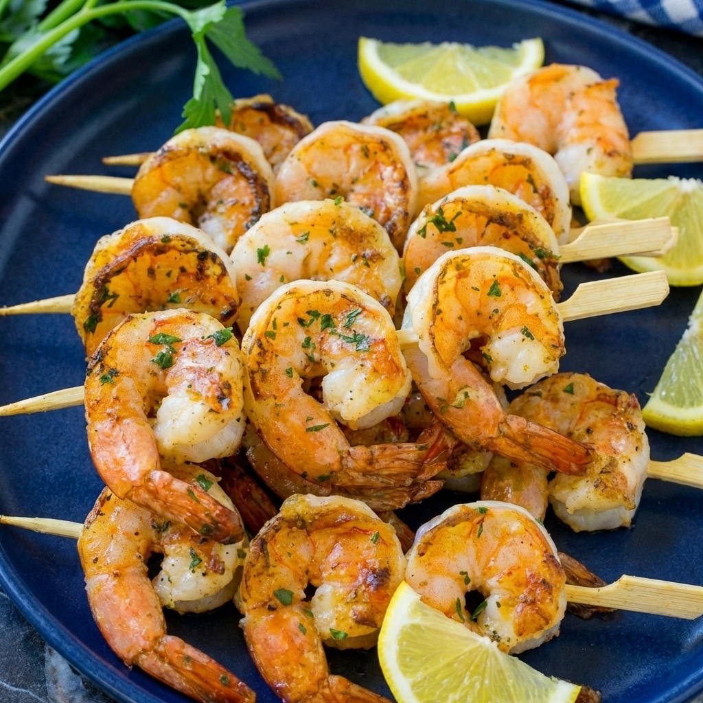 Grilled shrimp skewers are the perfect summer meal—quick, healthy, and absolutely bursting with flavor. Marinated in a bright mixture of garlic, lime, olive oil, and herbs, these shrimp cook in just minutes on the grill, developing beautiful char marks while staying juicy and tender.