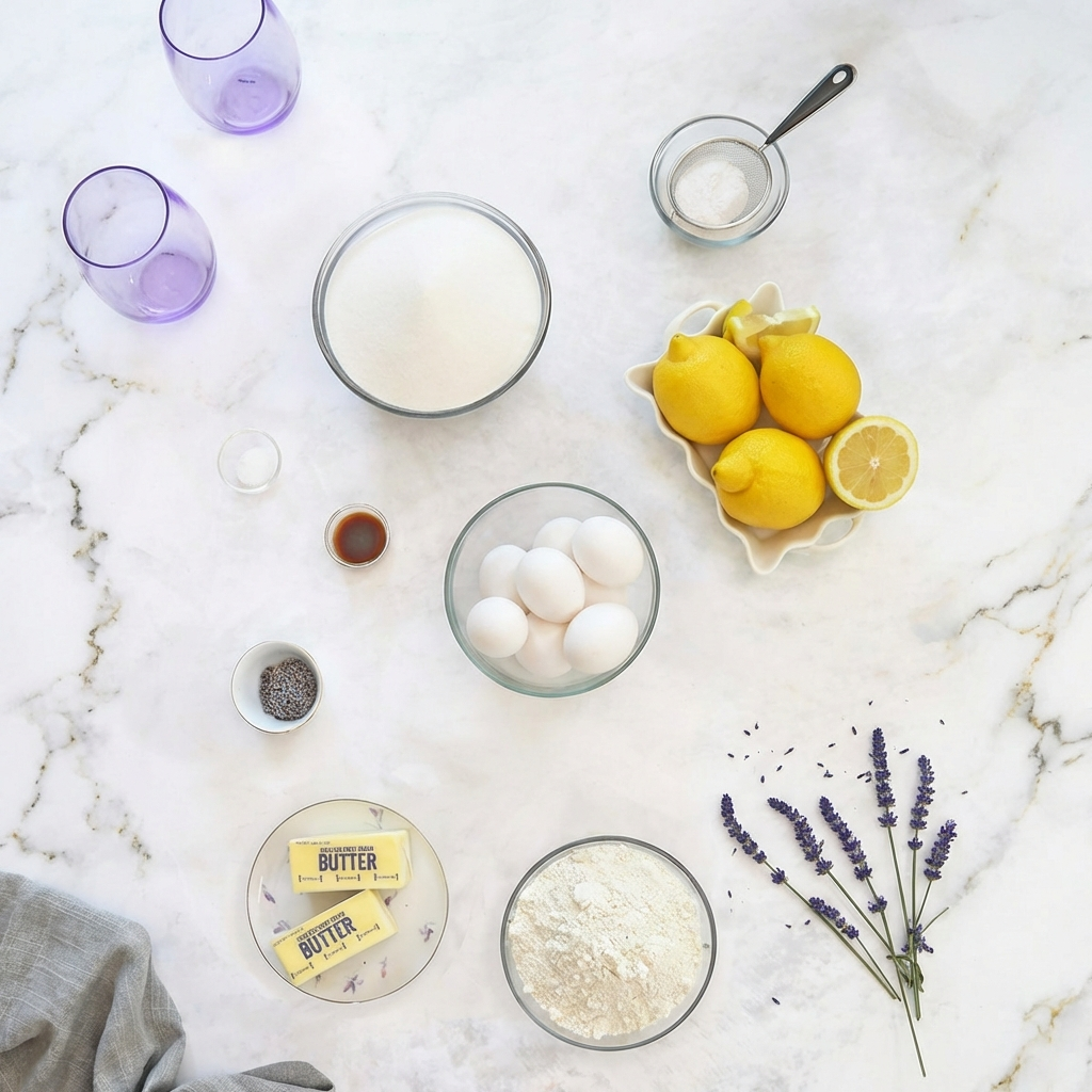 In a large bowl, whisk the lavender-infused sugar with the eggs until smooth and slightly pale. Whisk in the flour until no lumps remain. Finally, whisk in the fresh lemon juice and lemon zest until the mixture is smooth and uniform.
