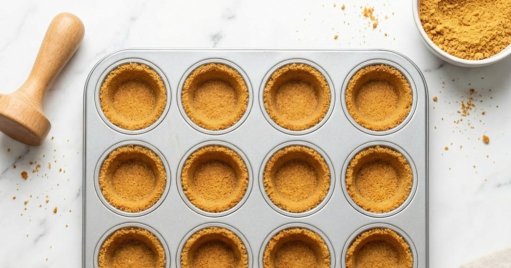 Preheat oven to 325°F (165°C). In a bowl, mix graham cracker crumbs, sugar, melted butter, and salt until it resembles wet sand. Press about 1 tablespoon of the mixture firmly into the bottom and up the sides of each cup of a 24-cup mini muffin tin.