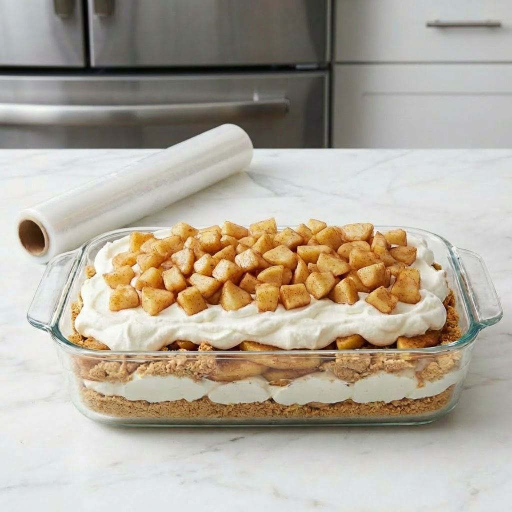 The magic of an icebox cake lies in the hydration of the cookies or crackers by the creamy layers. As the assembled dessert chills for several hours, the moisture from the whipped cream and apples slowly migrates into the graham crackers, softening them to a tender, cake-like consistency without becoming mushy.