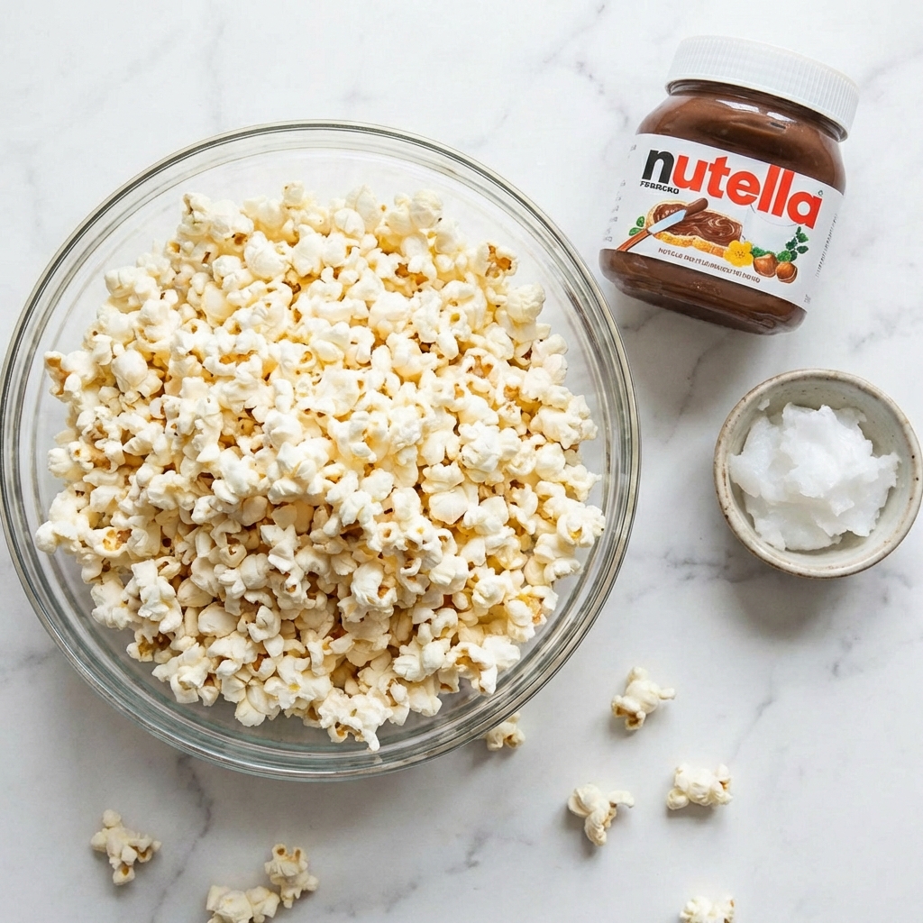 The magic lies in a two-ingredient glaze that behaves like chocolate. Nutella provides the flavor, sugar, and fat, while a small amount of refined coconut oil (or another neutral oil) thins it just enough to make it pourable and coat every nook and cranny of the popcorn. When heated and stirred together, they form a fluid, homogenous sauce.