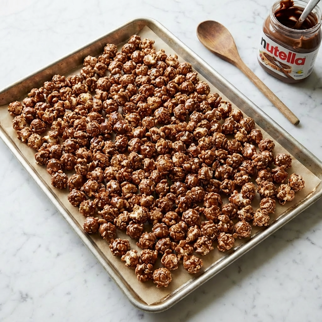 - Work Fast with the Glaze: The glaze sets as it cools. Have your popcorn ready and your baking sheet prepared before you melt the Nutella.