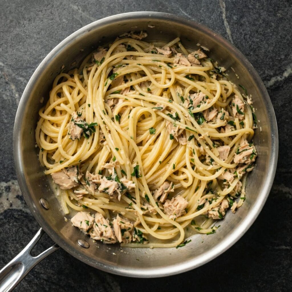 Grab your skillet, open that pantry, and enjoy a cozy bowl of creamy tuna pasta—no extra pots required.