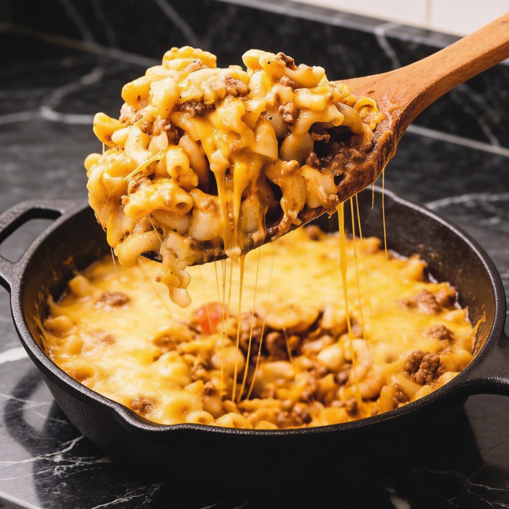 Savory beef, tender pasta, and melty cheddar come together in perfect harmony—proof that sometimes the simplest meals are the most satisfying.