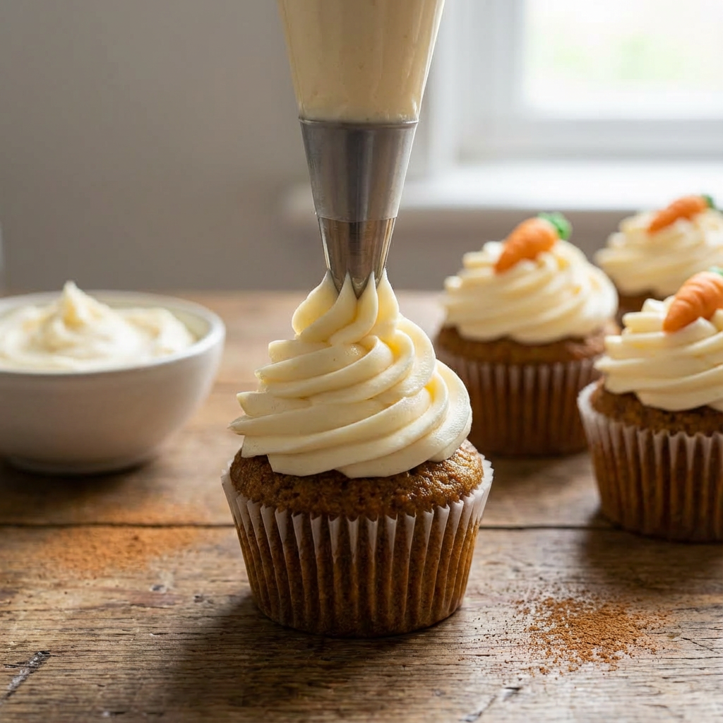 Once cupcakes are completely cool, pipe or spread the frosting on top. Garnish with a sprinkle of cinnamon, extra chopped nuts, or a fondant carrot.