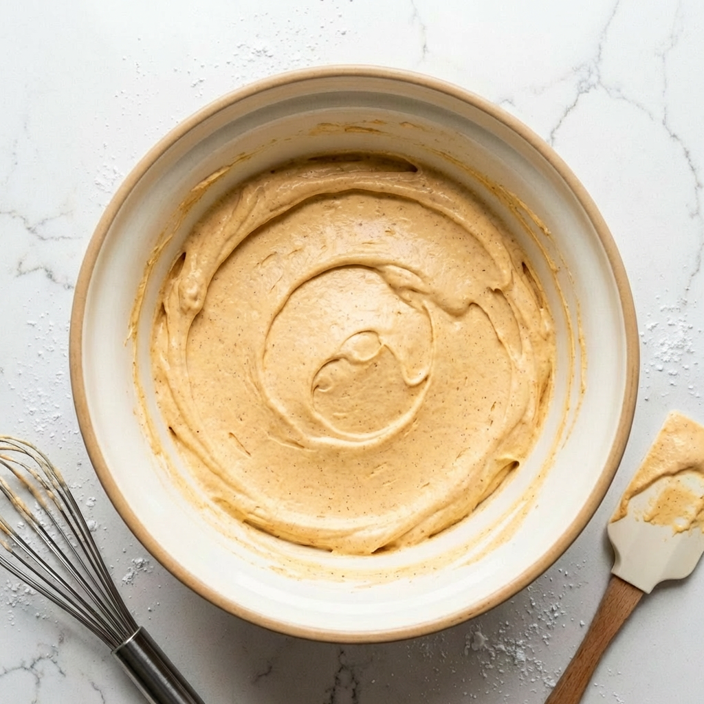 The mascarpone cheese, a delicate triple-cream, is gently folded in to maintain its fat structure without breaking and becoming grainy. The addition of pumpkin puree introduces moisture and fiber; this is balanced by the thickening power of the egg custard and the whipped cream folded in at the end for lightness.
