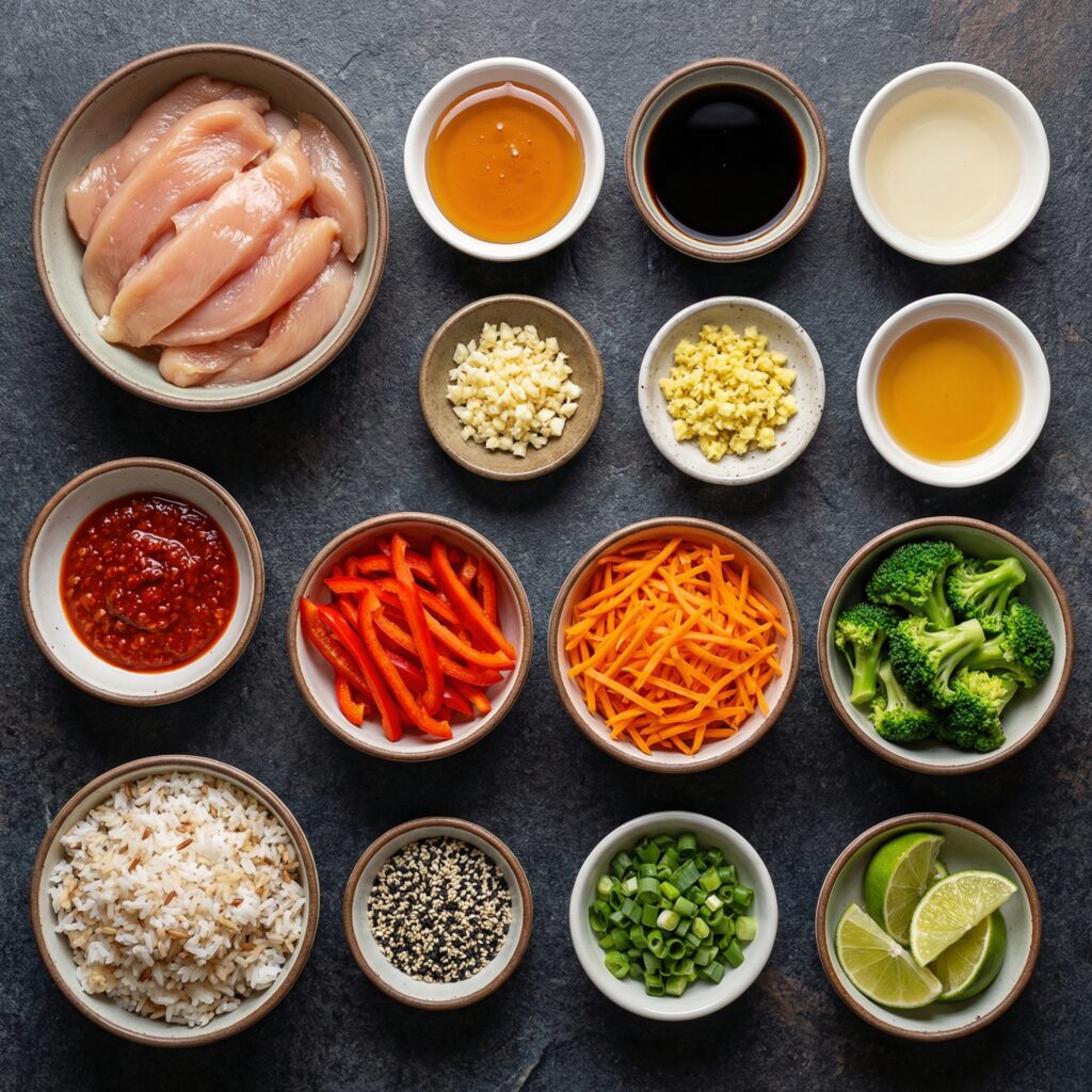 Spicy Honey-Ginger Chicken Bowls are a vibrant, flavorful, and balanced meal. Cutting the chicken into strips ensures fast cooking and maximum surface area for that sticky glaze, while crisp vegetables and fluffy rice provide perfect contrast.