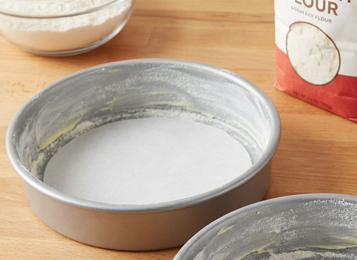 Preheat oven to 350°F (175°C). Grease and flour two 9-inch round cake pans and line the bottoms with parchment paper.
