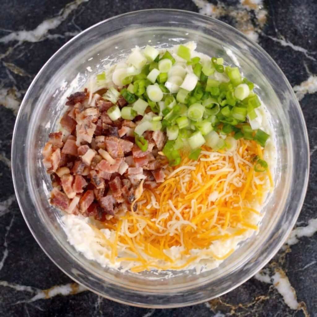 In a medium bowl, combine the softened cream cheese, shredded cheddar, Parmesan, minced garlic, chopped cilantro, chili powder, cumin, and salt. Mix until well combined. If using any optional add-ins, fold them in now.