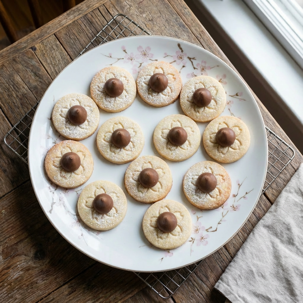 Cherry Blossom Cookies: Delicate Shortbread with a Chocolate Center
